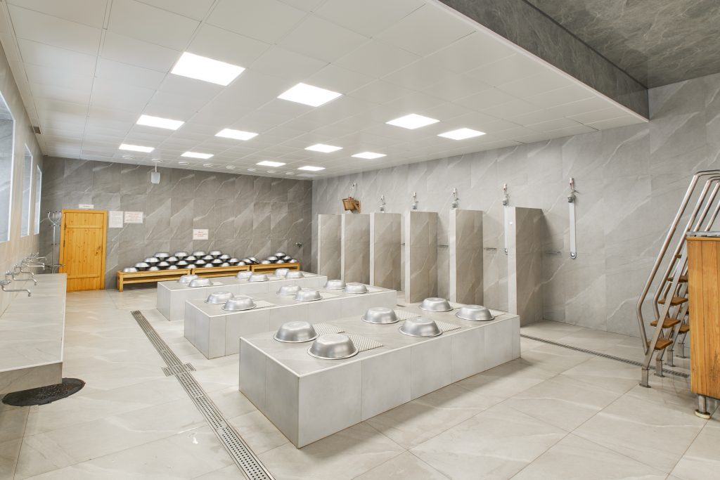 В банях работают женское и мужское отделение, купель, кафе.