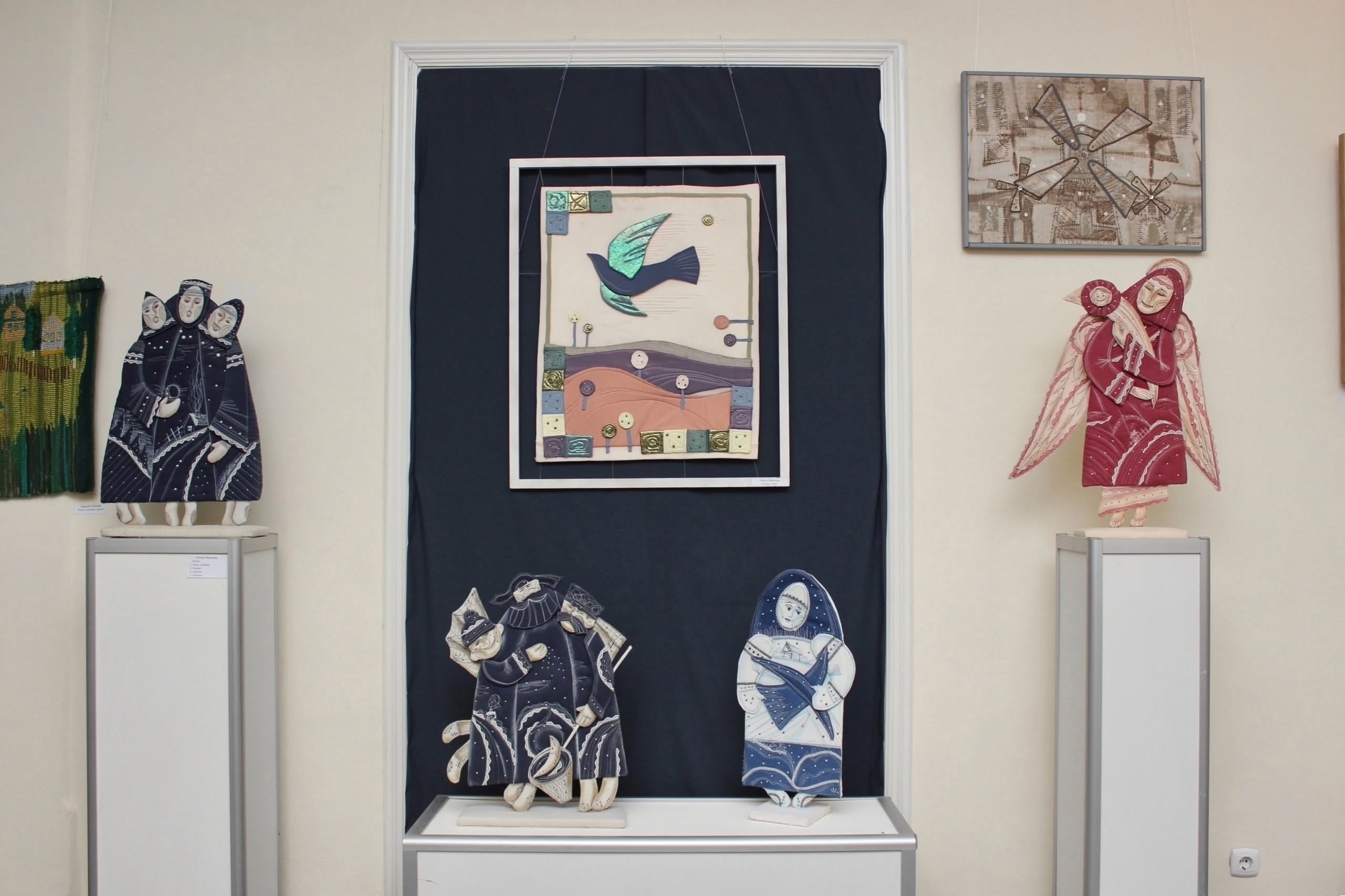 Выставка объединила коллекцию сувенирных кукол Вячеслава Позгалева, авторских кукол из фондов Череповецкого музейного объединения, кукол из частных коллекций череповецких художников Марины Брауловой, Ирины Божко, Елены Ивановой, Майи Сысоевой и ткачество Евдокии Пановой.